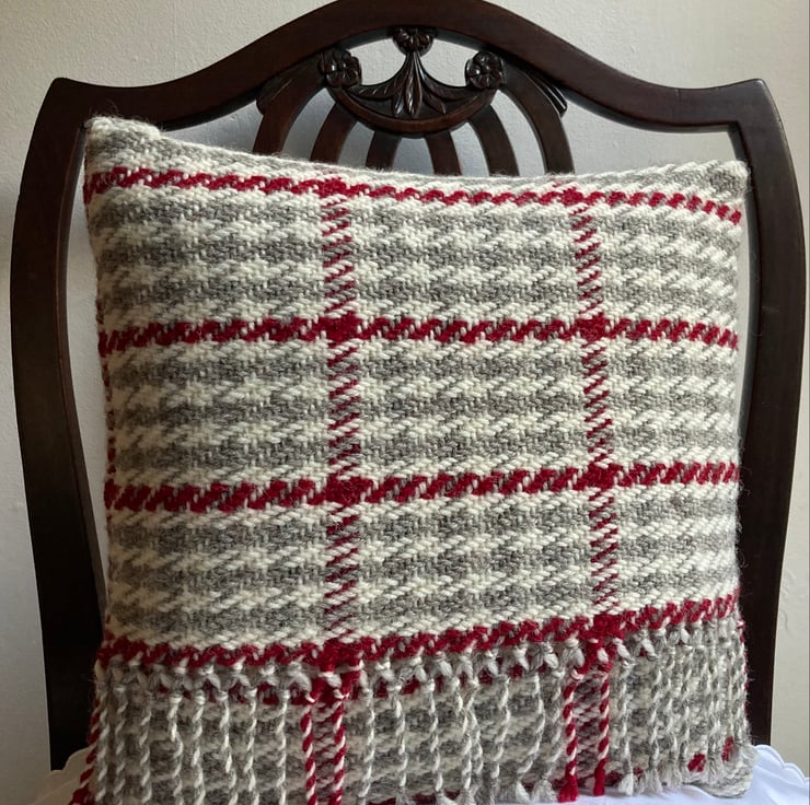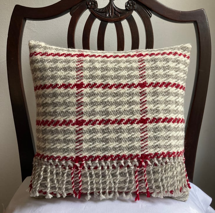 Angharad Cushion: deep Red12” Handwoven and Handmade in Wales