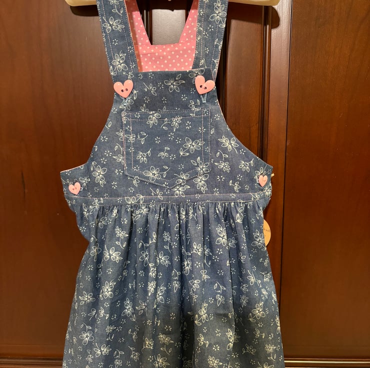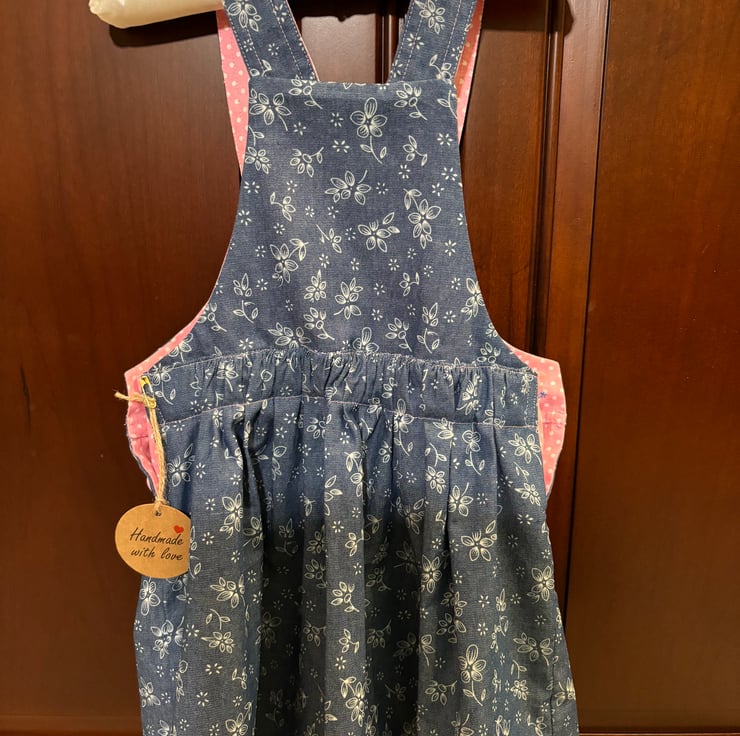 I love the style of this little pinafore, it’s works a treat in this pretty denim print. A dress for all seasons.