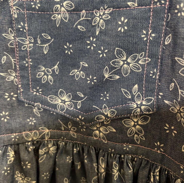 The fabric is a pretty flower printed denim. The fabric is soft and comfortable to wear.