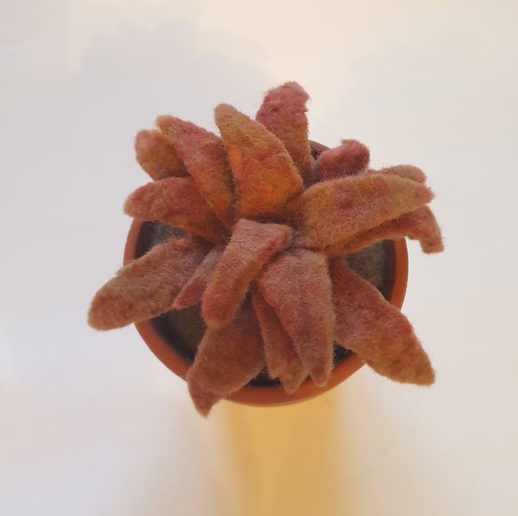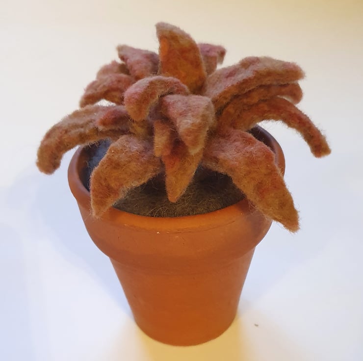 This little vintage flowerpot holds an amber-coloured sempervivum in handmade felt - a perfect addition to any room if you are not good at remembering to water houseplants!