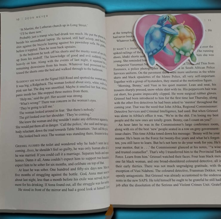 Beautiful turtle watercolour print on a handmade heart shaped magnetic bookmark, no book lover could resist. Measuring 7cm high and 8cm wide ( at widest part of the heart. This book mark will snap securely to the page so there is no risk of it falling out. Can be wiped with a damp cloth if it gets dirt.