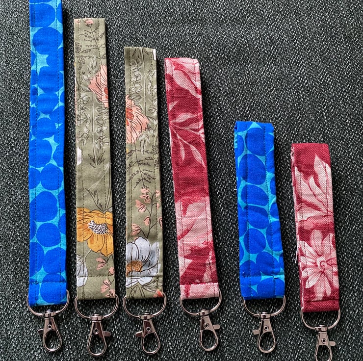 Please note all lengths exclude the length of the clip (4cm). Larger/longer straps/lanyards are available as a custom order. I can also create straps from your own fabrics - just get in touch via email!
