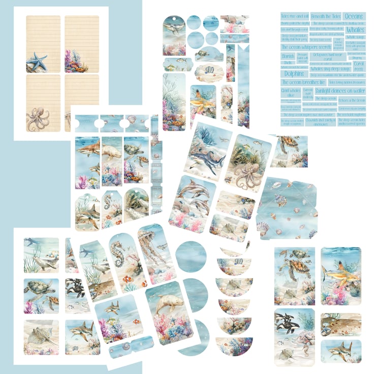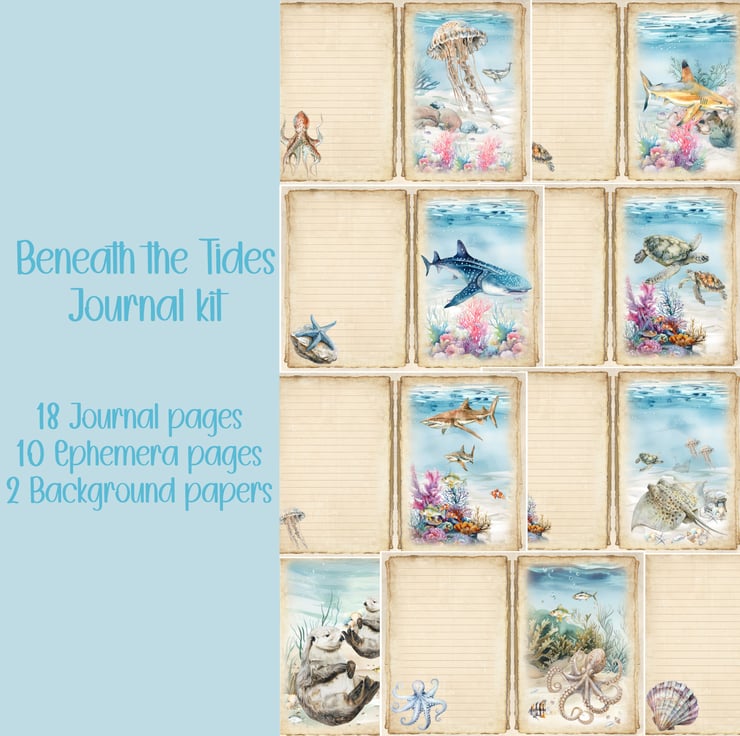Enjoy a world under the sea with this beautifully crafted digital download collection. Perfect for scrapbooking, journaling, and adding an ocean charm to your creative projects, this set features a carefully curated selection of ocean themed ephemera and journal pages.