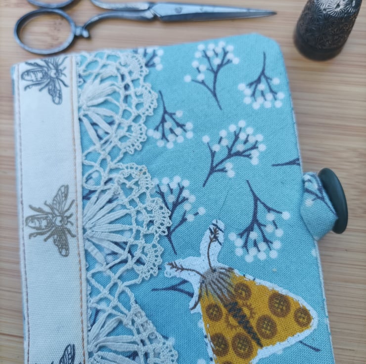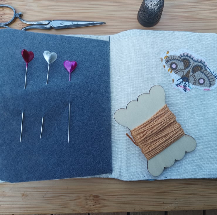 This needle case and matching pin cushion has been hand stitched with care. it is an ideal gift for that creative person in your life and would enhance any creative space. It has a lovely image of a landscape which I have creatively embroider to add interest and texture.