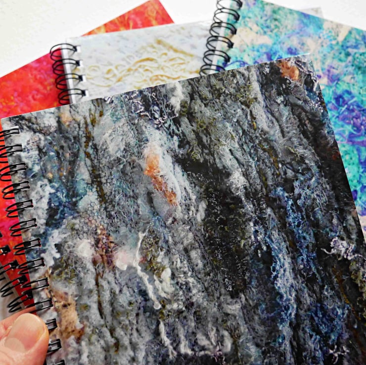 Beautiful notebooks with a printed cover from my original stitched textile artwork. A lovely sketchbook or journal, with 38 plain/lined pages just waiting to be written, doodled, sketched and scribbled in. Spiral bound.