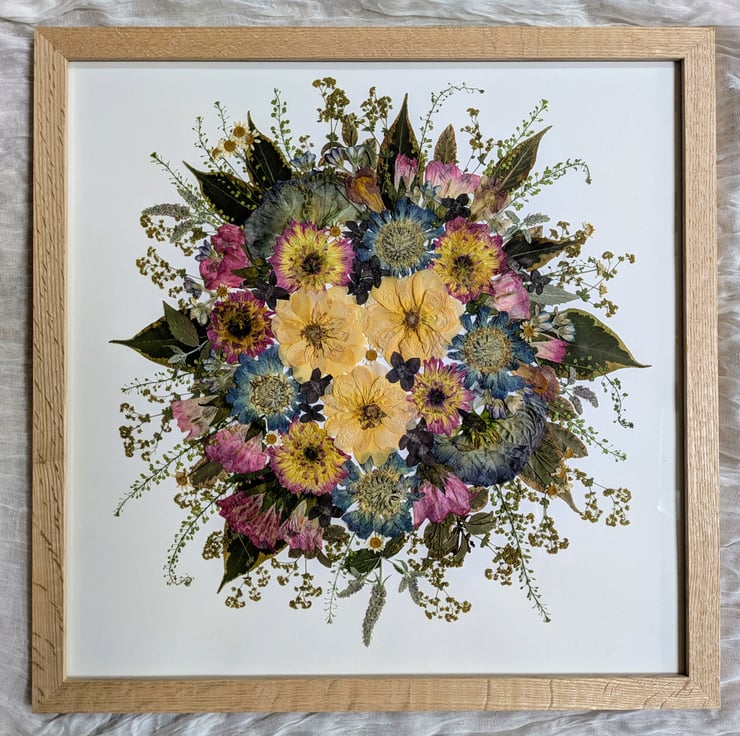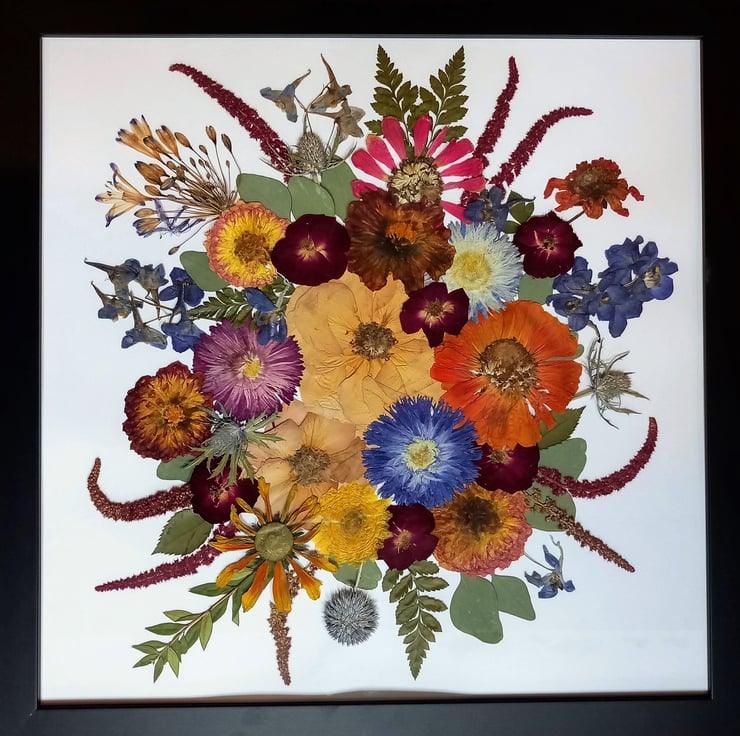 Wedding bouquet preservation. Please allow 4-8 weeks for your wedding flowers to press. I will then work with you to create your picture.