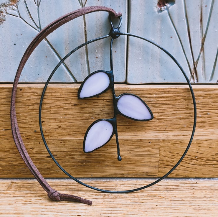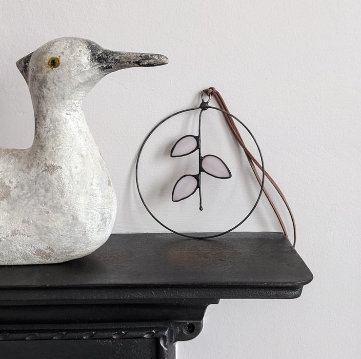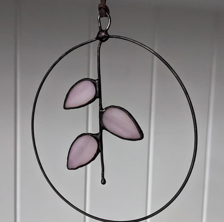 A stained glass mini wreath of pussy willow in the softest cashmere pink, an ideal friendship or romantic gift made using the Tiffany copper foil technique.