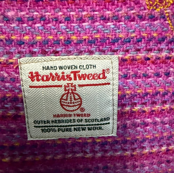 This is a unique Harris Tweed crossbody / shoulder bag with the subtle image of Highland Coo embroidered on the front.