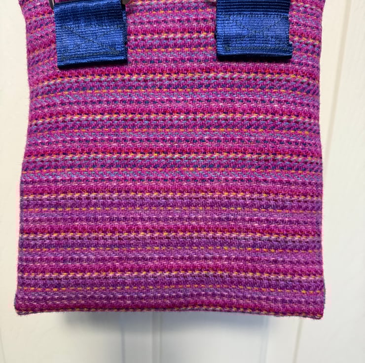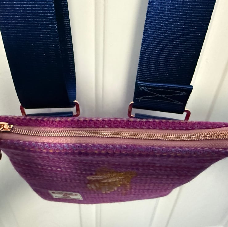 This is a unique Harris Tweed crossbody / shoulder bag with the subtle image of Highland Coo embroidered on the front.
