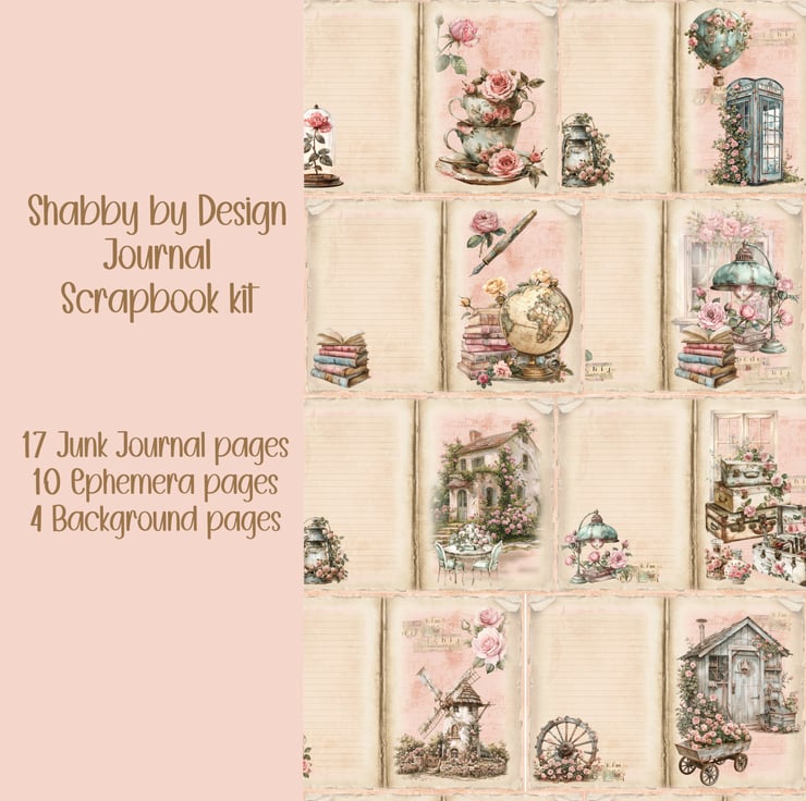 Enjoy crafting with this beautifully crafted digital download collection. Perfect for scrapbooking, journaling, and adding a shabby chic charm to your creative projects, this set features a carefully curated selection of vintage shabby themed ephemera and journal pages.