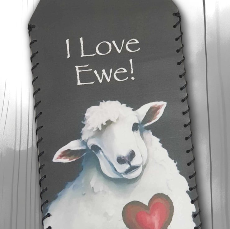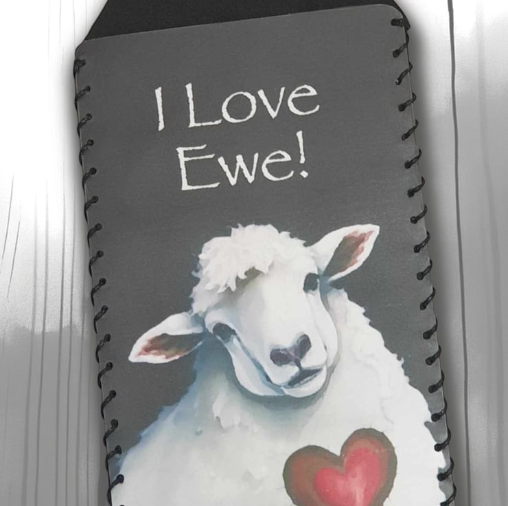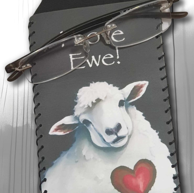 Ewe watercolour print on handmade glasses case, can also be used as a phone protector for most phones.