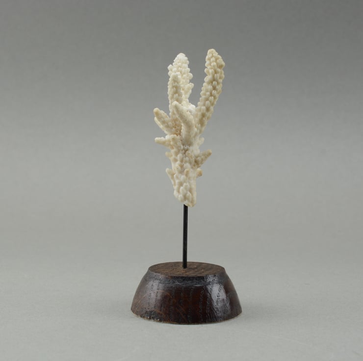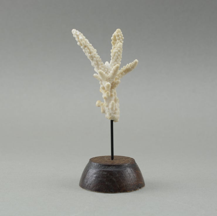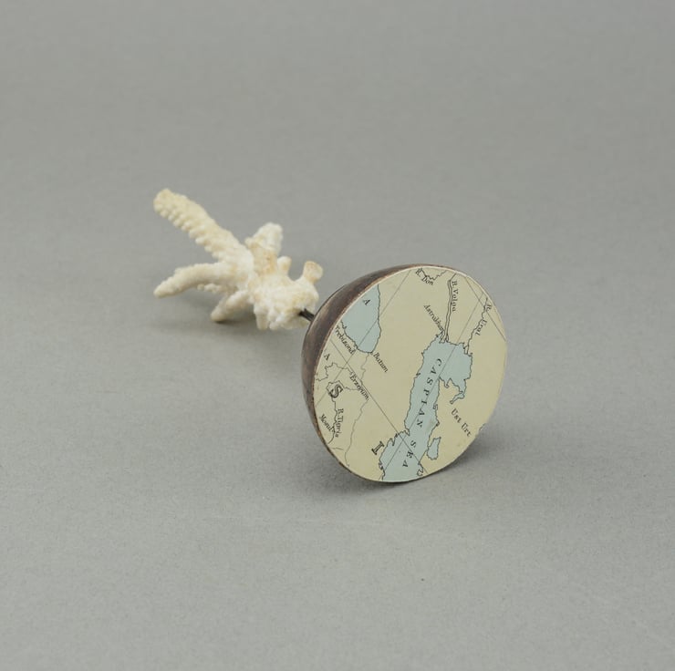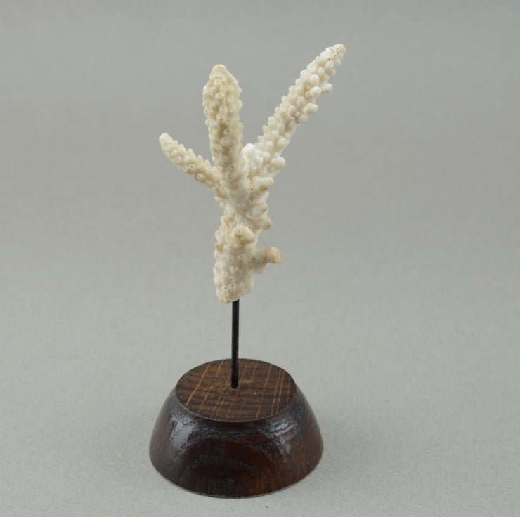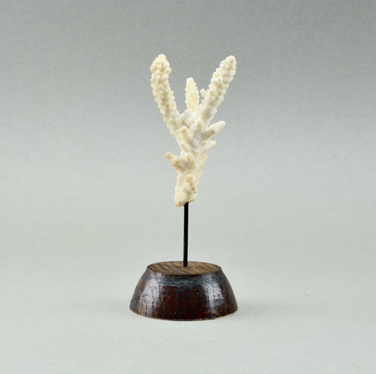 A Victorian inspired mounted real vintage coral specimen. We found a box of broken coral pieces which have such wonderful shapes and textures and decided to make bases from salvaged antique oak. The steel pillar is a salvaged bicycle spoke. The underside has been covered with antique map. 11.5cms tall and 5cms diameter.