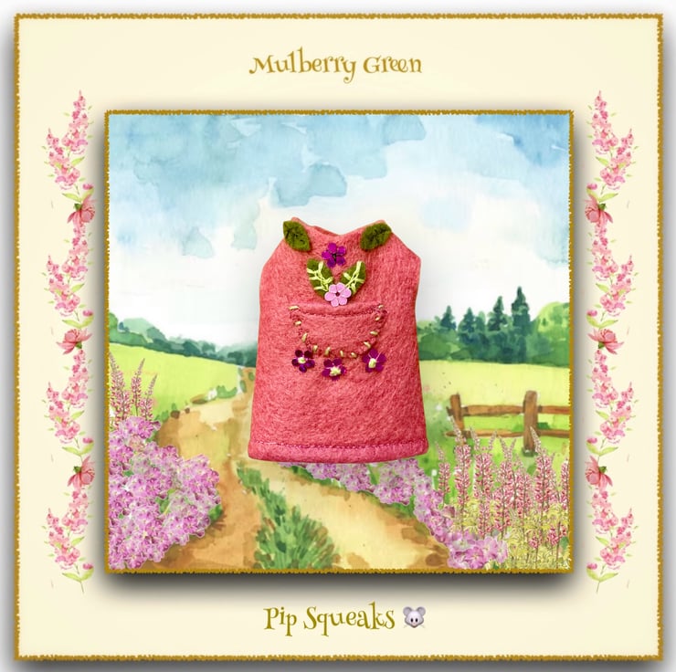 A sweet little pink felt pinafore dress, embroidered with sequinned flowers, made specially to fit the young Pip Squeaks.