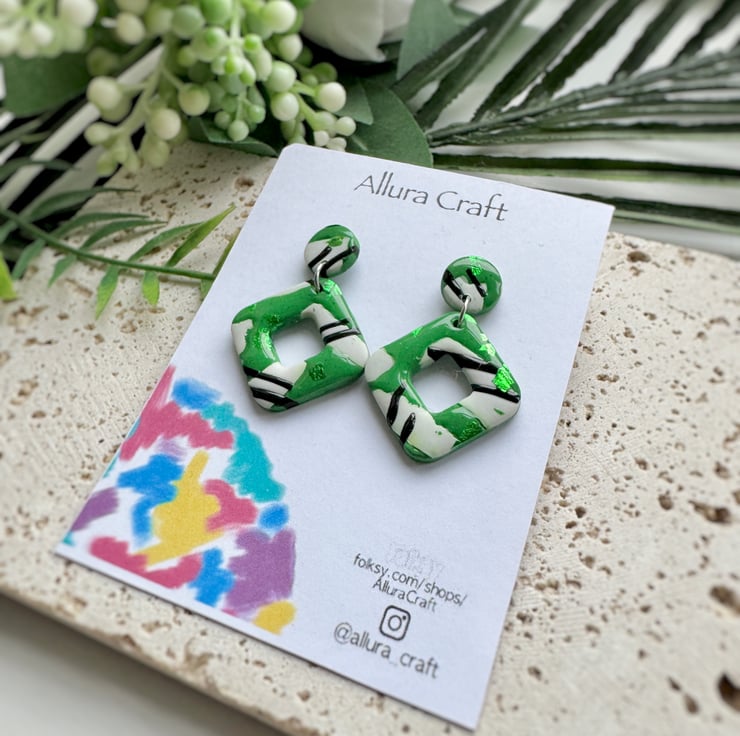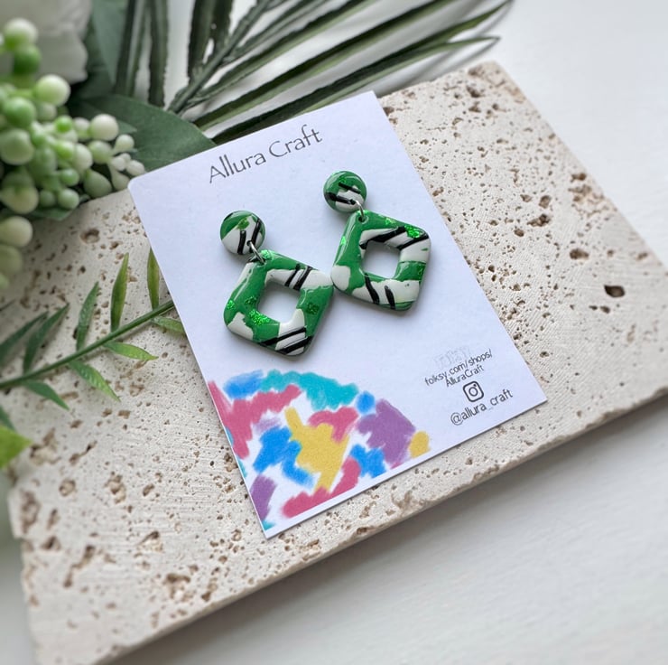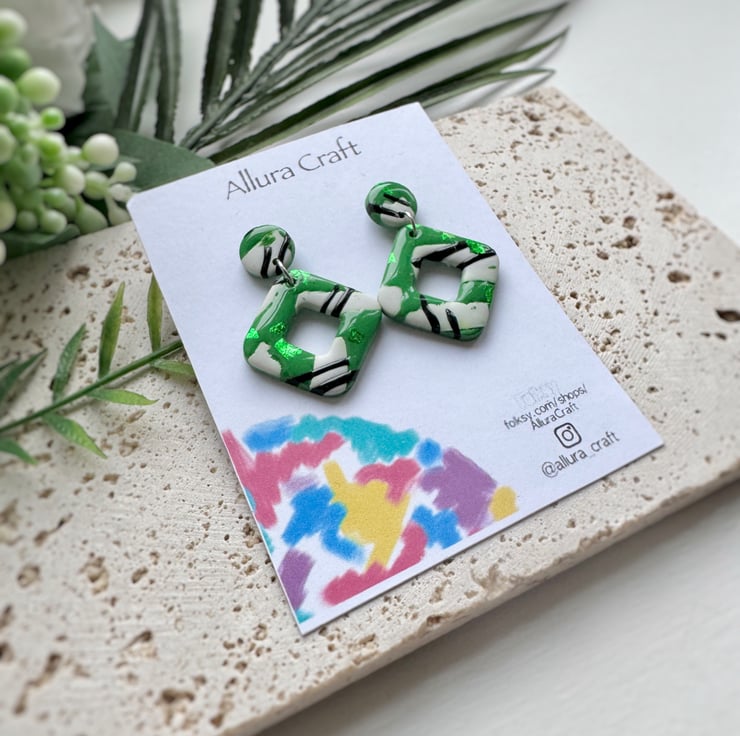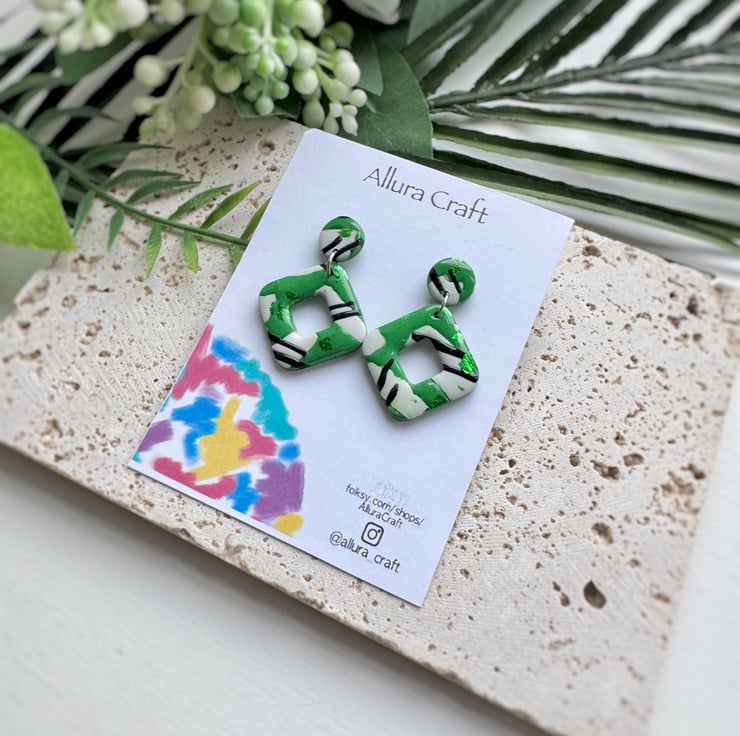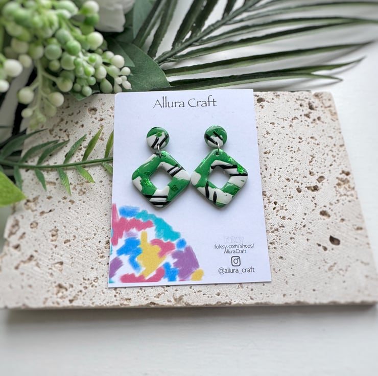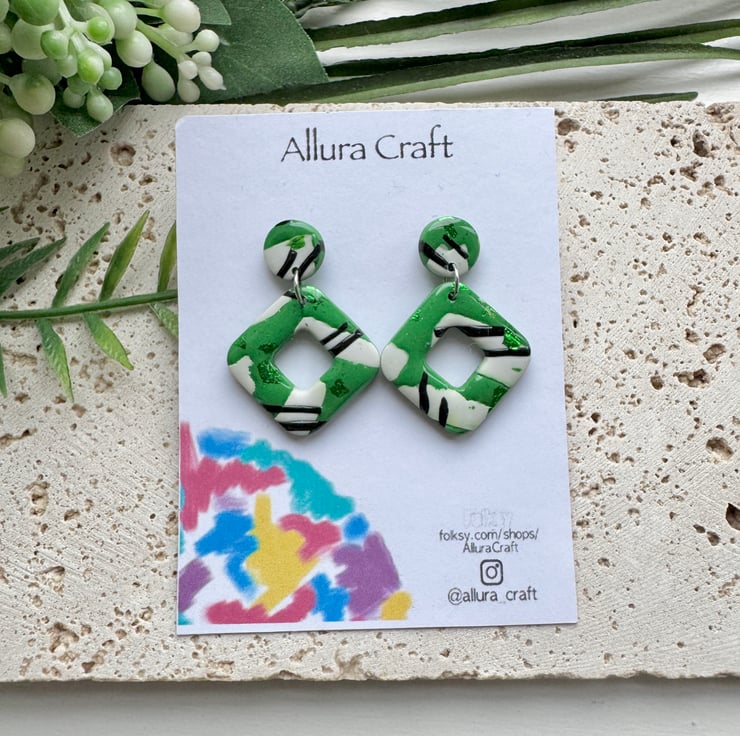 With a green polymer clay base in a circle and hollow diamond shape formation