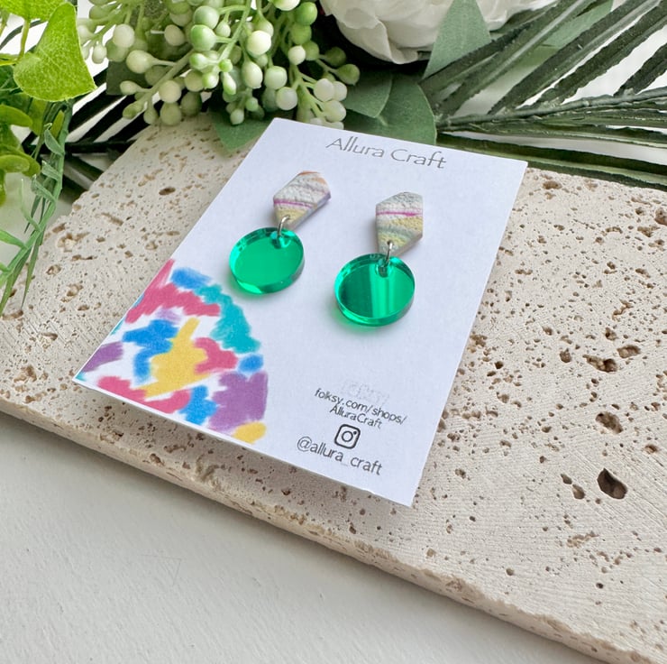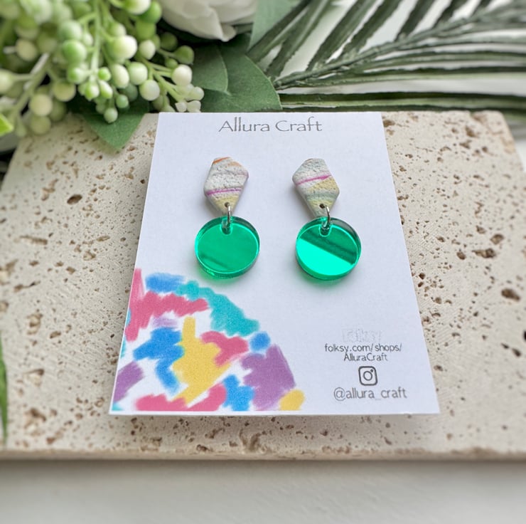 Attached to a circle of green mirrored acrylic