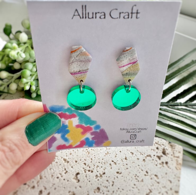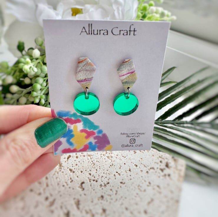 Made from reworked polymer clay, giving a beautiful subtle multi colour line pattern