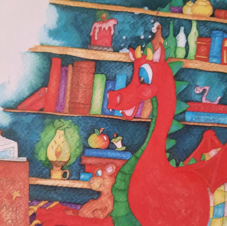 This illustration was inspired by my long time love of books. Films and stories like the Never Ending Story and Pete's Dragon are childhood favourites, and living in Wales there are always tales of red dragons.