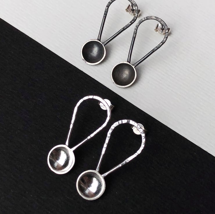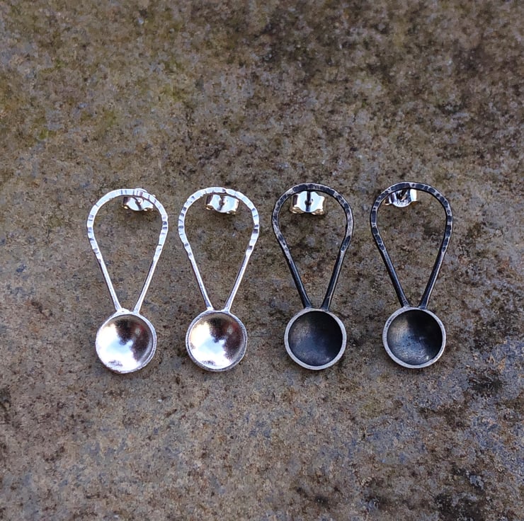 My spoon earrings and abstract spoon earrings are all inspired by my collection of spoons and some of my larger work. These are cast from a master made with sheet and wire, they are then hammered individually.