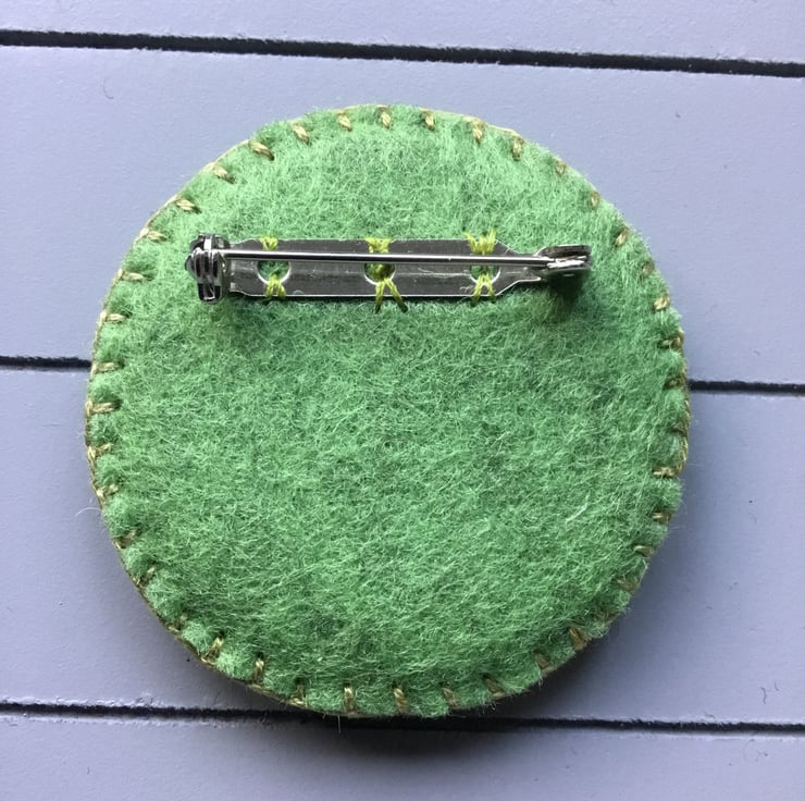 This brooch is 2 inches or 5 cms in diameter….a nice wearable size to enhance a jacket, dress, jumper or cardigan.