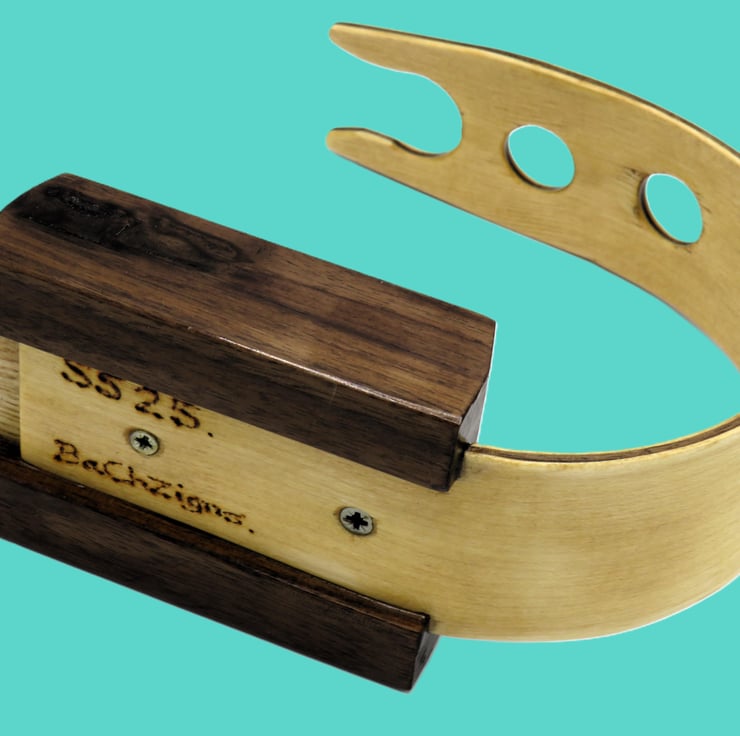 Timbers used are maple with a black walnut core for the arm, an ash and black walnut base, all fixings are stainless steel to reduce any rust from the stand should it get wet. All of the stand is coated in epoxy resin to stabilise the timber and protect it from water ingress, then coated and waxed. This item is number SS25 and this is pyrographed on the based as our items are original and limited editions. The images show a classic razor and our shaving brush SB14 that are not included, used for illustration only.