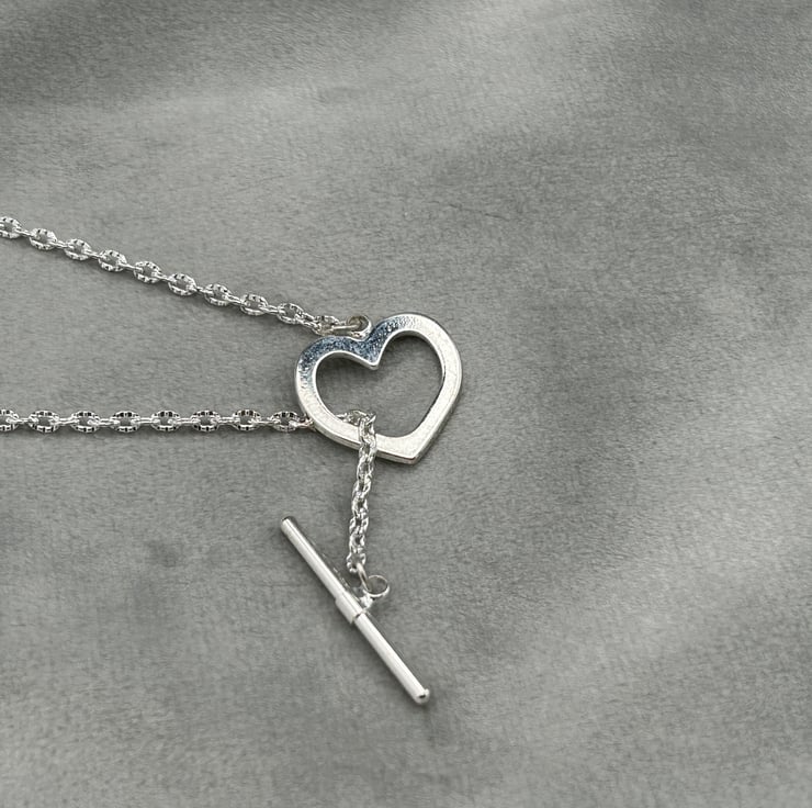 The necklace, with the silver plated chain and heart shaped toggle clasp/bar, is 18 3/4" in length, I can alter this length, please contact me for details and costings.