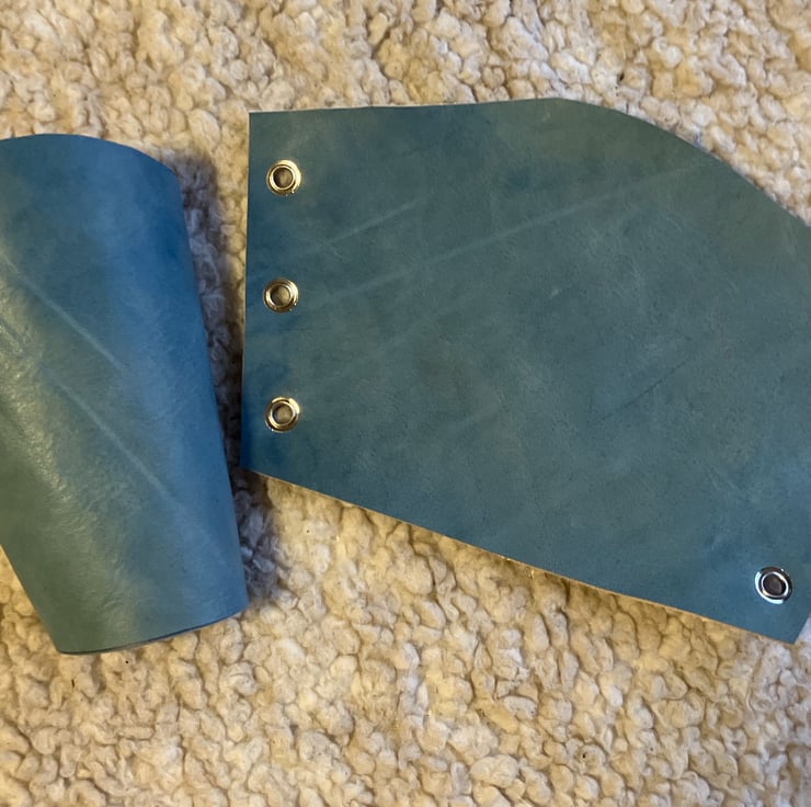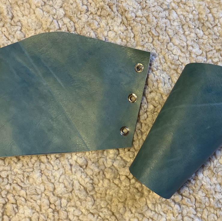 I just enjoy making bracers and other leather accessories :) And when I saw this denim blue/ocean blue coloured leather - I just knew it had to be used to make some awesome leather gear -- including these bracers