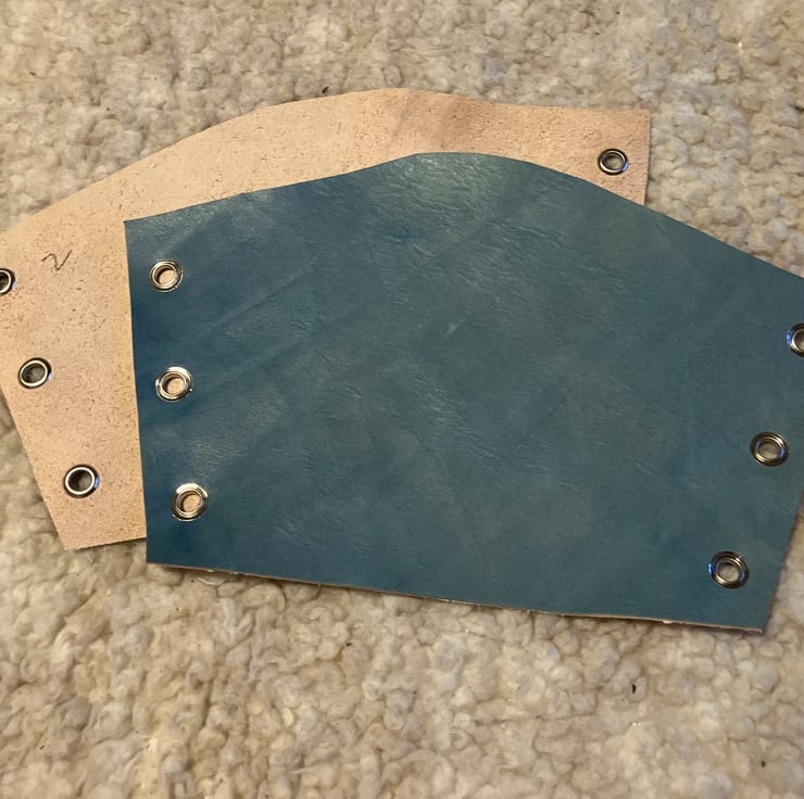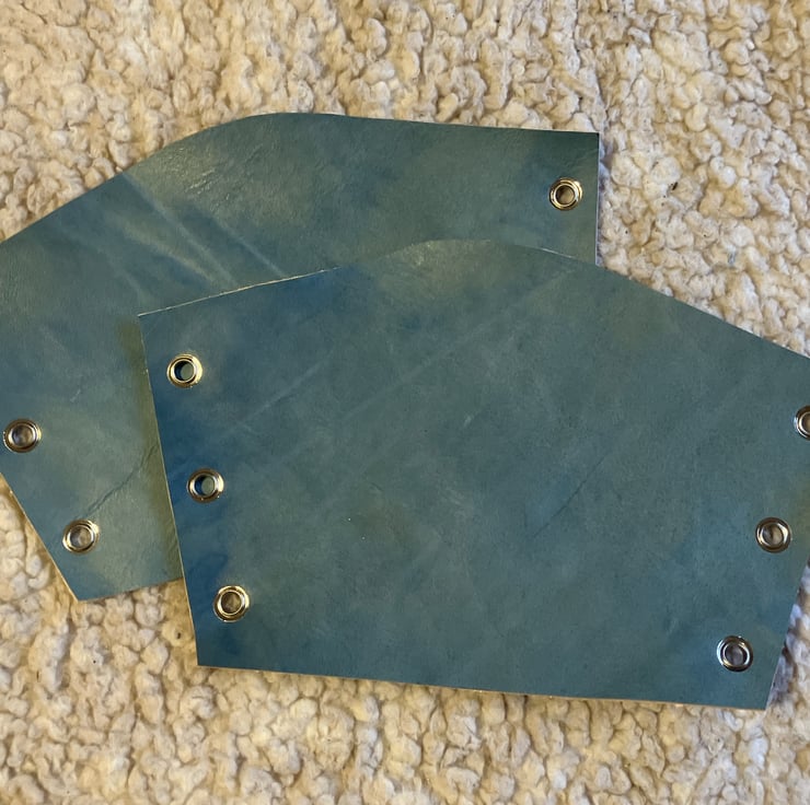 Don't forget they will expand a bit after you put in the lacing. All bracers come with lacing - - lacing colour will vary based on what is in stock to supply with the order. Please note that these bracers have nickel plated eyelets.