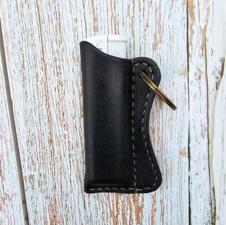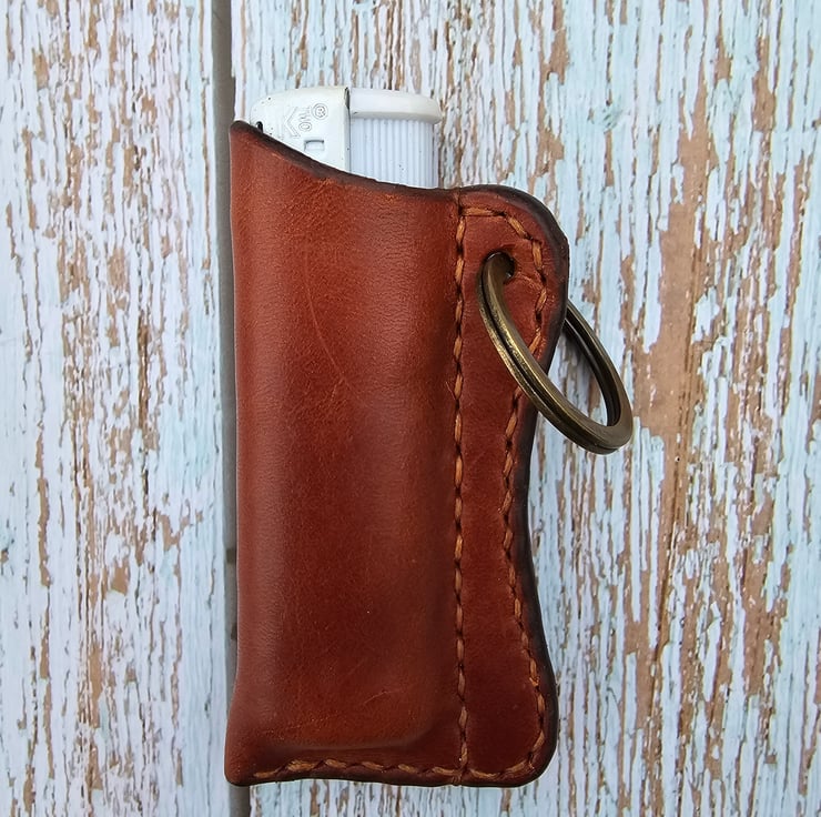 These handcrafted lighter cases are compatible with standard BIC lighters, to give them a more sophisticated appearance! Available in three colors—tobacco, black, and tan—these cases feature a keychain attachment, ensuring they remain easily accessible. Please note that the lighter is not included; only the case is provided. Initially, the case may feel snug when inserting a lighter. This is a natural characteristic of premium leather and will gradually adjust to provide a perfect fit with continued use. All cases are made to order and 100% hand cut, stitched and finished, meaning they are all unique! The case will be packaged in a padded envelope, which is environmentally friendly and will fit through your letterbox.