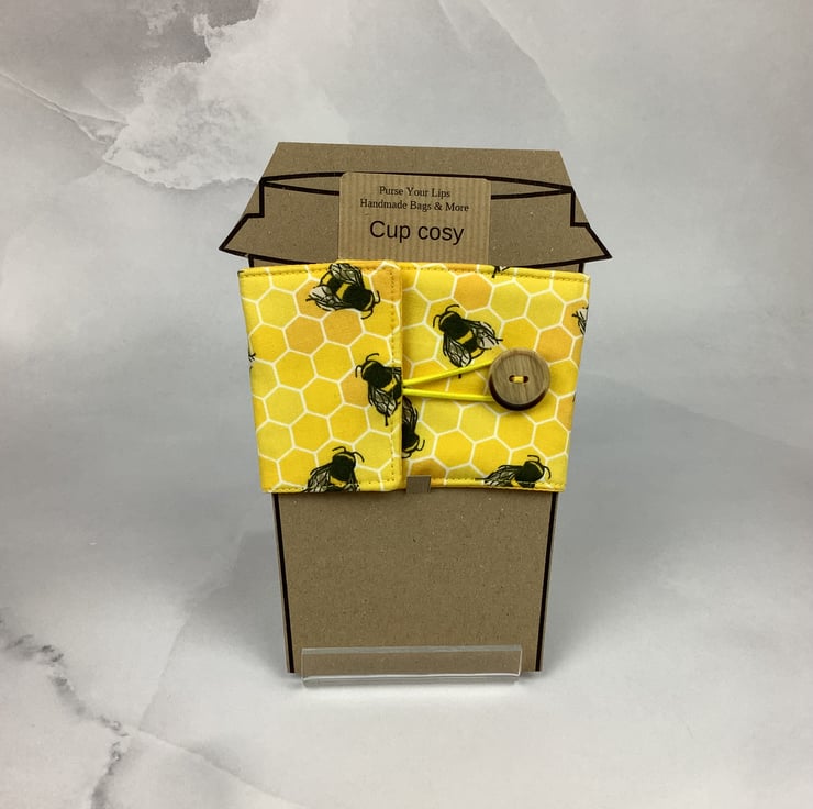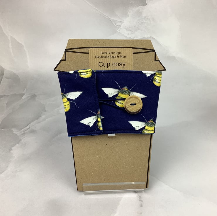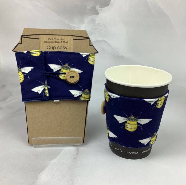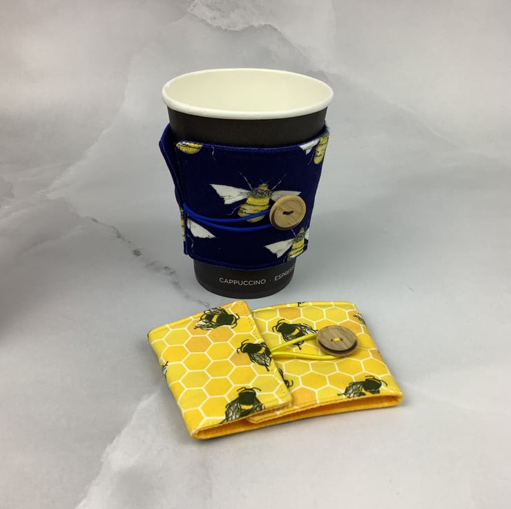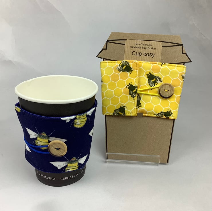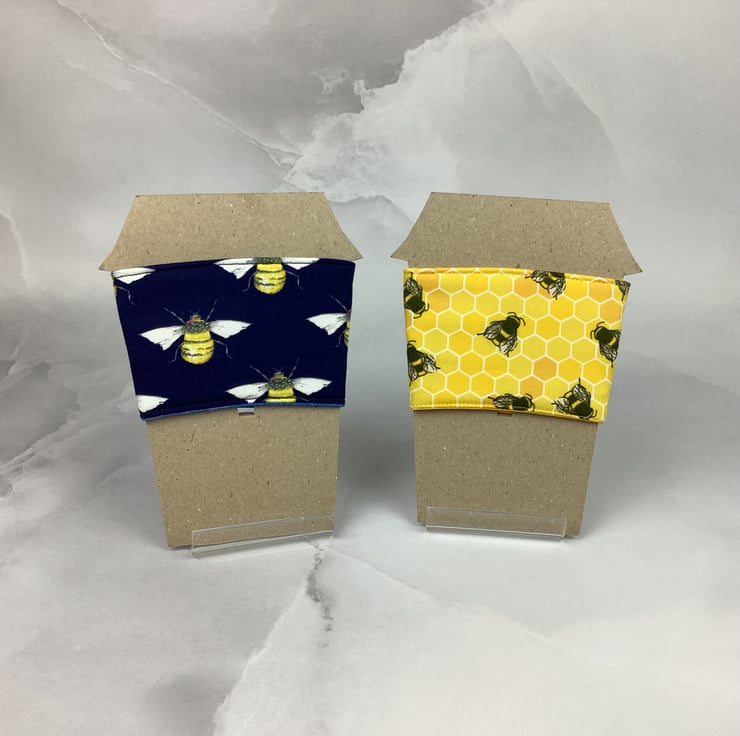 Bee cup cosy, Bumble bees cup cozy, Mug sleeve, 2 options, Handmade