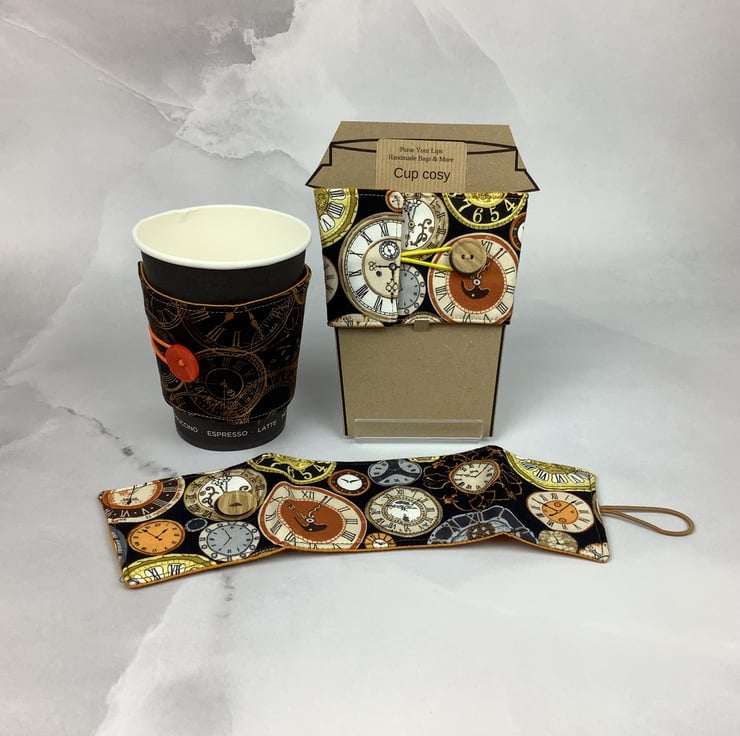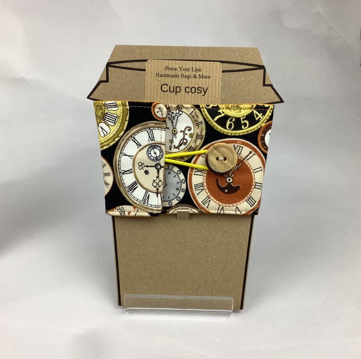 Steampunk cup cosy, Clocks cup cozy, Time mug sleeve, 2 options, Handmade