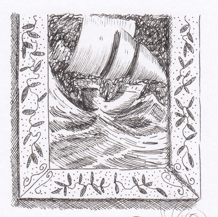 This is an original A4 (210mm x 297mm) artwork drawn by myself. It is not a print. It is actually from an A3 sheet that has been cut in half so you may notice the cut along one side. It is drawn on 300gsm acid free paper using a pigment liner pen and Indian ink. There is a 2cm margin around the work so the image is 170mm x 257mm.