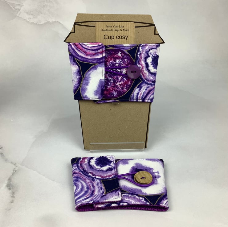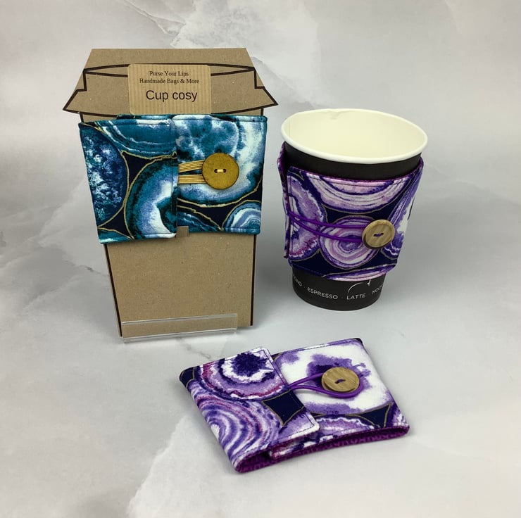 Geode cup cosy, Crystal cup cozy, Mug sleeve, 2 options, Handmade