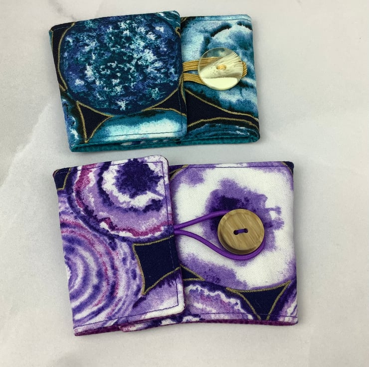 Each of my unique cup holders is individually made by me in my relaxing and tranquil little West Sussex garden studio so the pattern placement and button may vary.