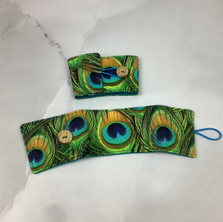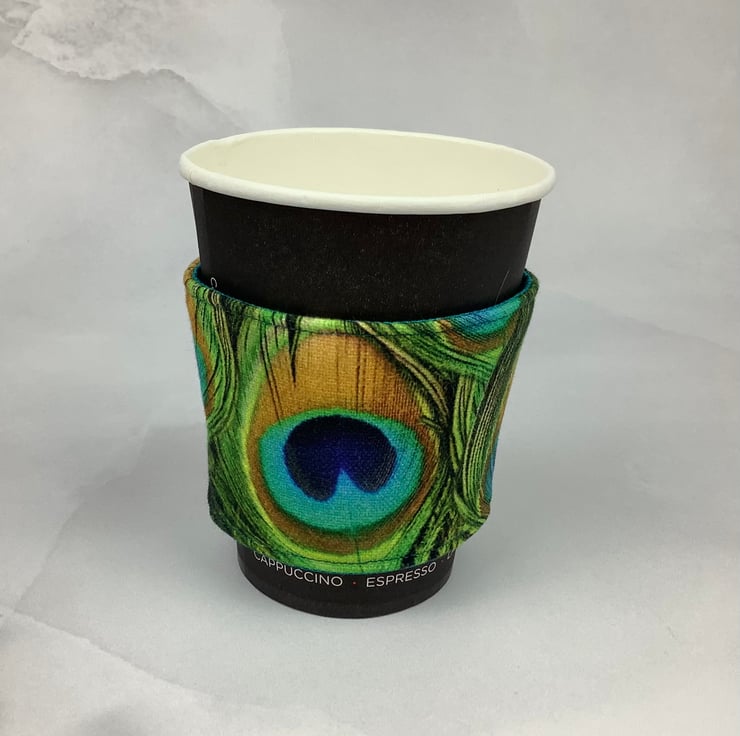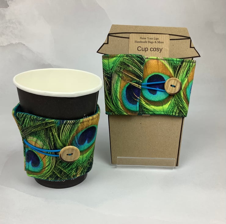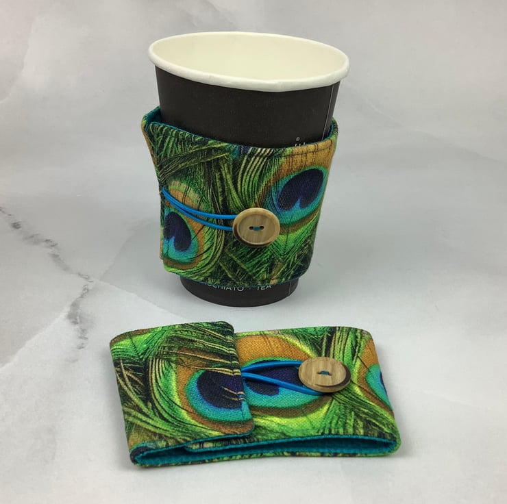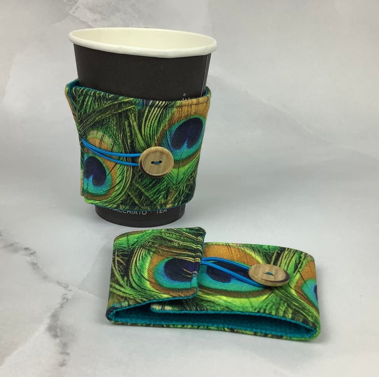 Each of my unique cup holders is individually made by me in my relaxing and tranquil little West Sussex garden studio so the pattern placement and button may vary.