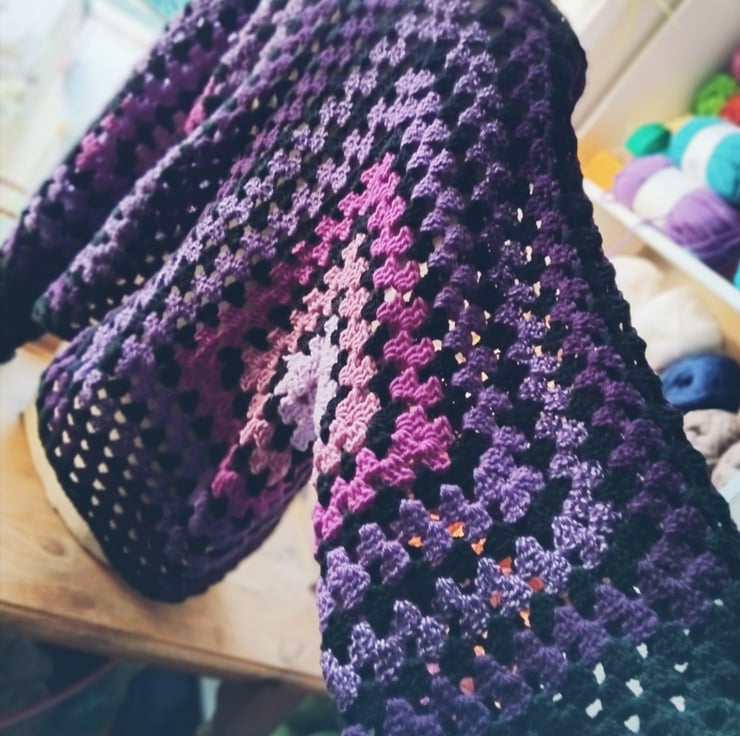 Crocheted in a gorgeous soft yarn and with a lovely mix of purple hues to truly make your outfit pop.