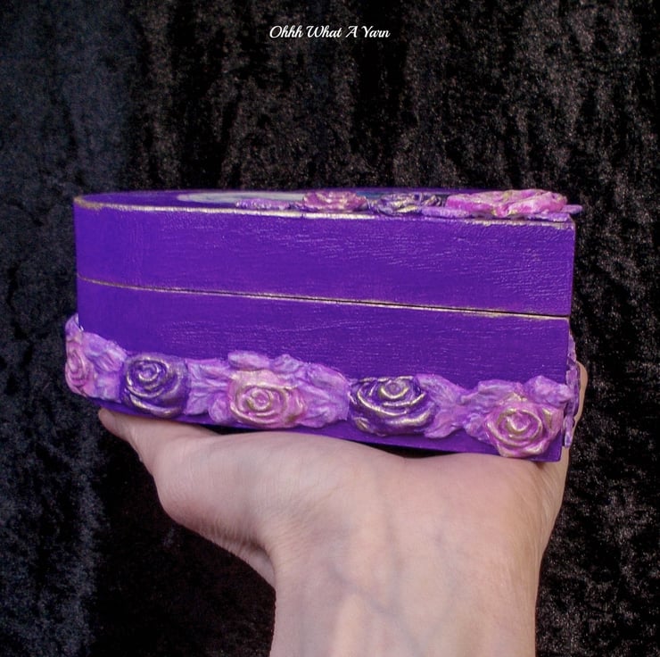 The inside of the box is painted in the same shade of purple and I have highlighted the edge areas with gold wax paste.