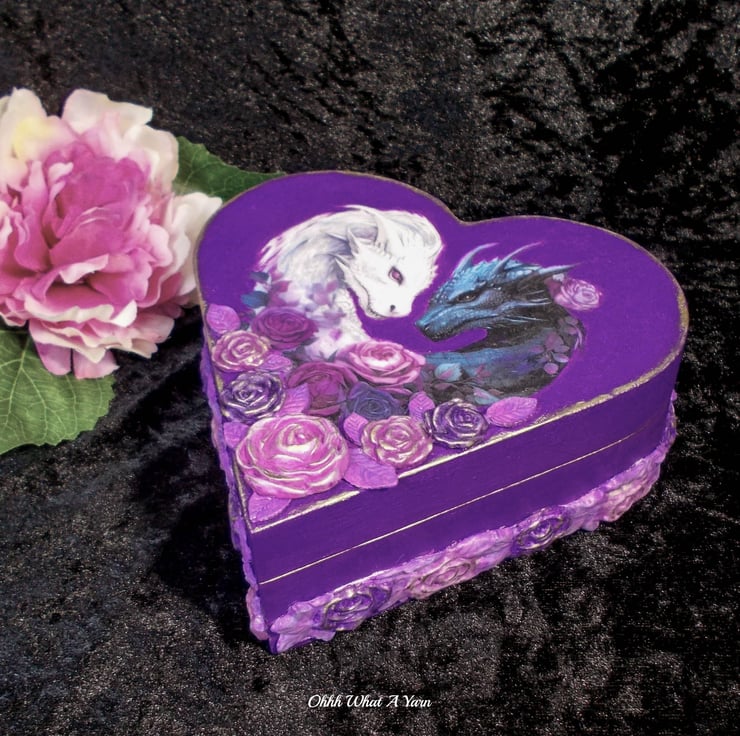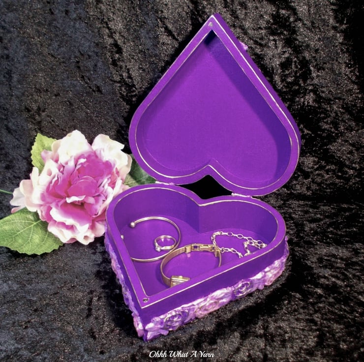 I have decorated this beautiful heart box in my favourite shade of deep purple.
