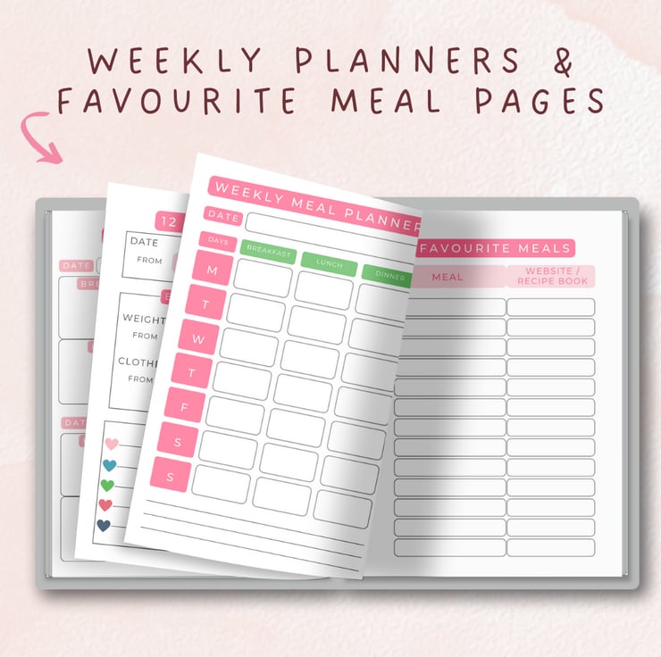Say hello to the Weigh Happy journal! Whether you're at the beginning of your journey or looking to refocus, this 12-week weight loss and wellbeing planner is here to help. Drawing on over 12 years of experience in the weight loss industry, we understand the struggles you face—and we’ve crafted a journal to turn those challenges into victories.