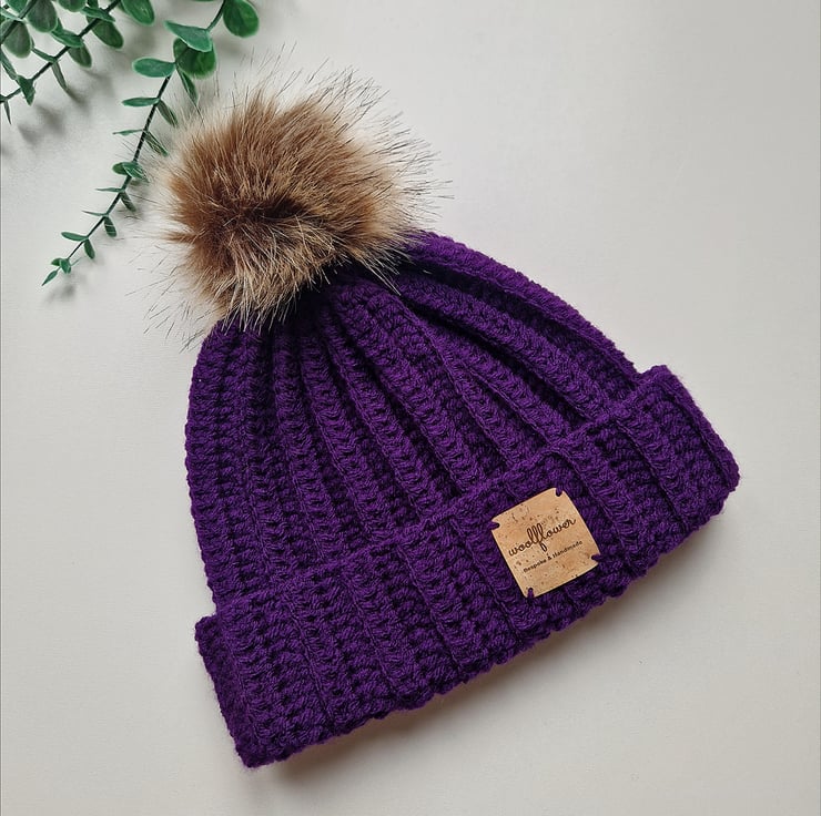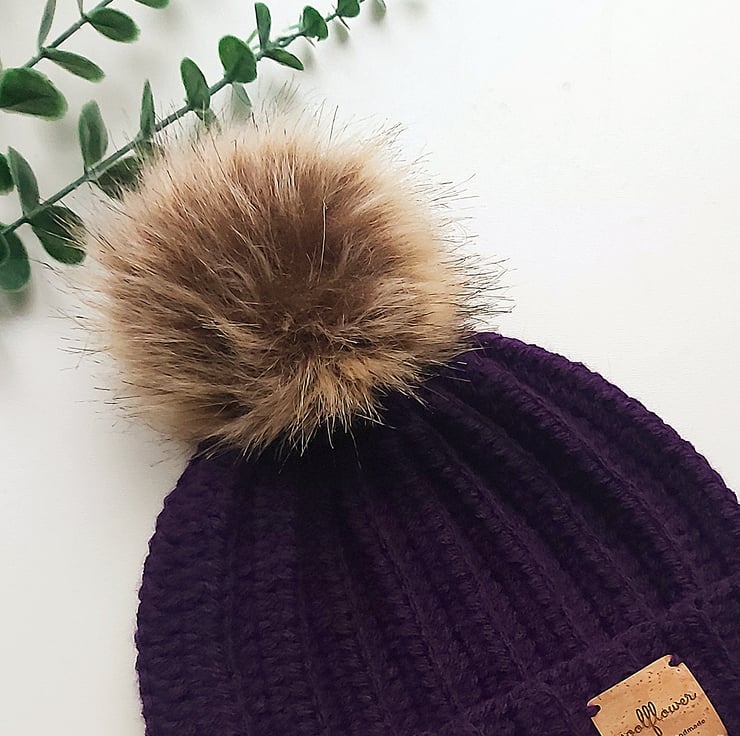A removable faux fur pom pom has been added, along with a light cork woolflower label for that extra special touch.