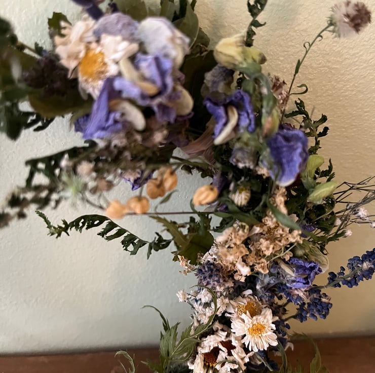 Dried flowers can last for many months if they are well looked after – handled carefully, kept out of direct sunlight and away from water and humidity. Some of the flowers may naturally fade over time.