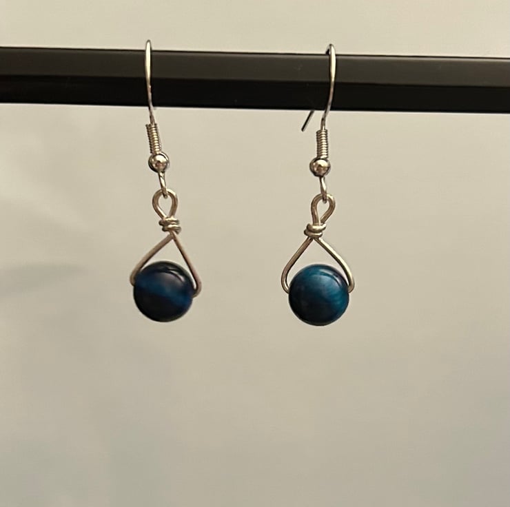 Sterling silver wire, sterling silver plated earring hooks and dark blue tiger’s eye beads with a beautiful shine!