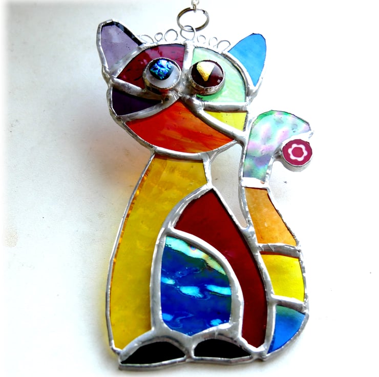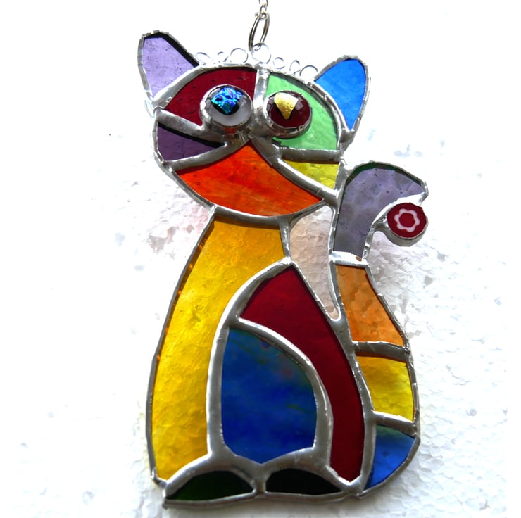 This suncatcher looks lovely hanging in the window where it shines and catches the light. A beautiful and totally unique present for yourself or someone you love. It will also make a rather good Rainbow Bridge gift for a departed feline friend.