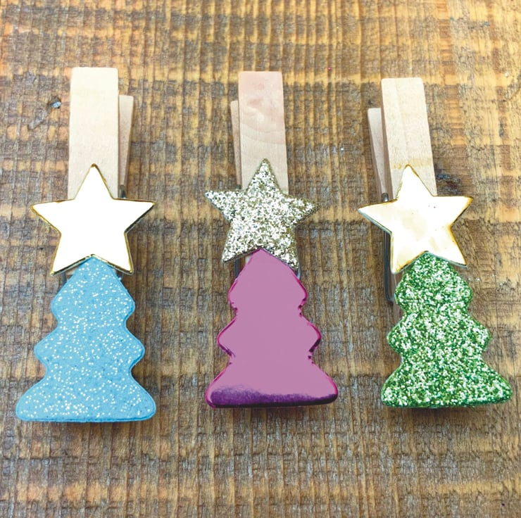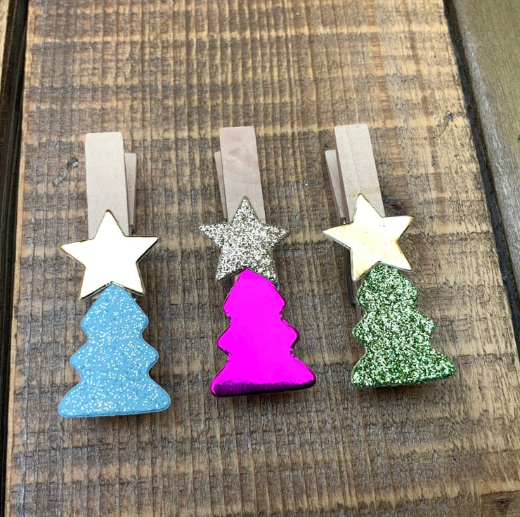Each dinky Christmas Tree is adorned with a Star and comes in a variety of Sparkles, Metallics, Glitter, Mirror Shine and Shimmer finishes. They are approximately 4.5cm long and can be used year after year.