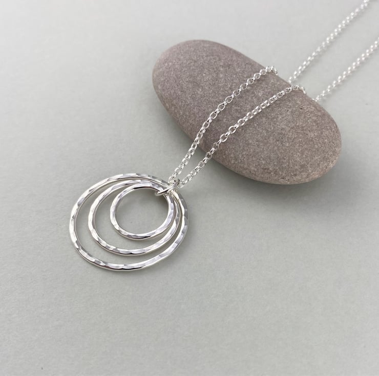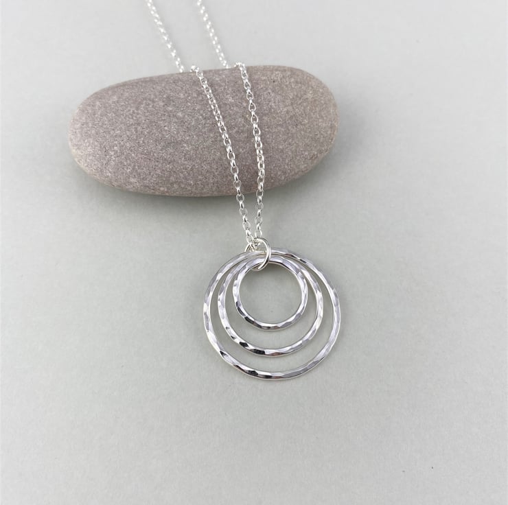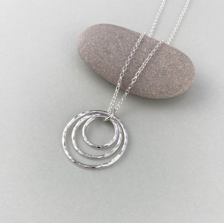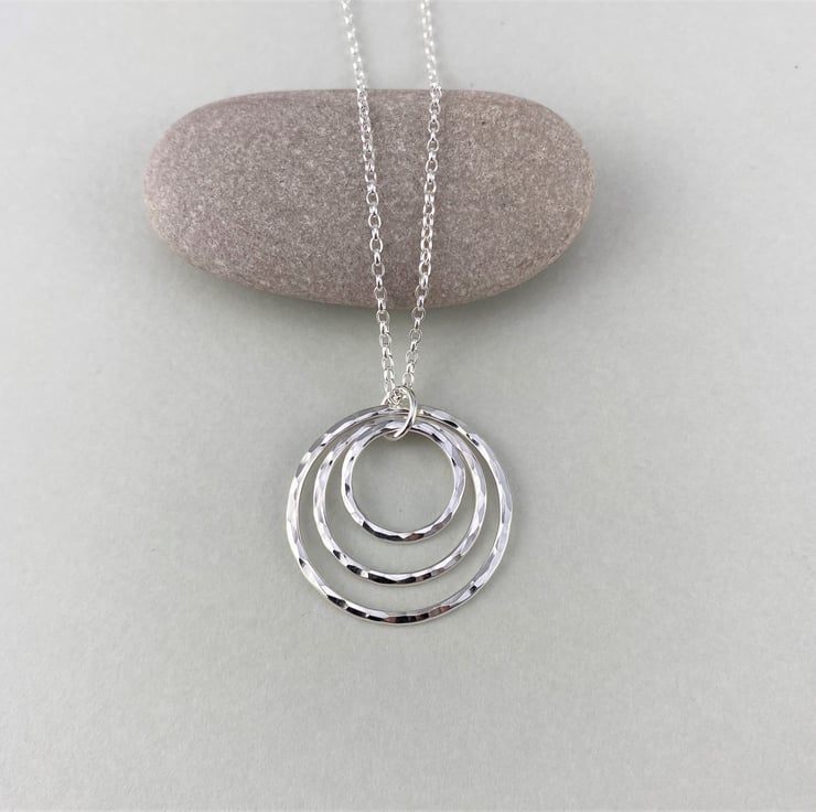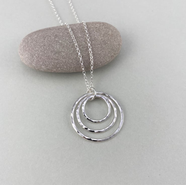 Hammered Sterling Silver Triple Circle Necklace