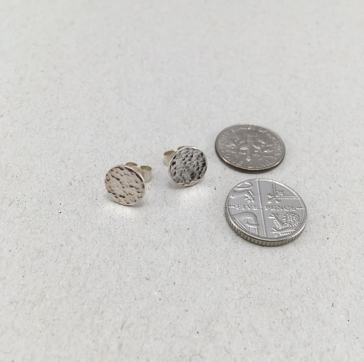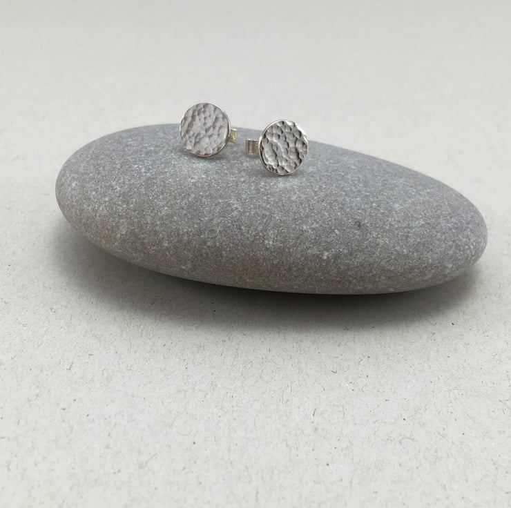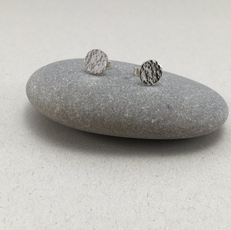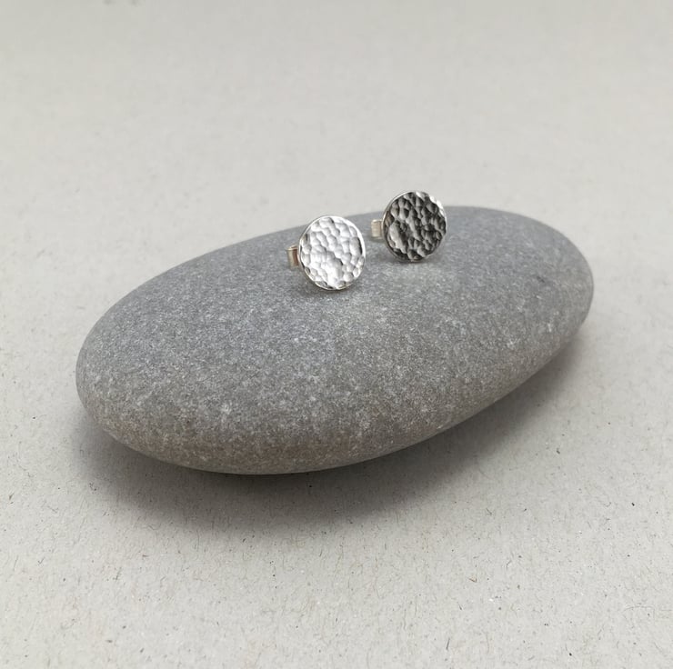These contemporary disc stud earrings are made from hammered sterling silver are perfect for everyday wear. Their modern, minimalist look is subtle yet effective and can be worn by anyone. I love the high polish of the hammered silver surface and the way they glimmer as they are worn. They measure approx. 10 mm in diameter. These would make a wonderful gift for anyone who loves craft jewellery, silver jewellery, or indeed a little treat for yourself! Perfect for every day wear!