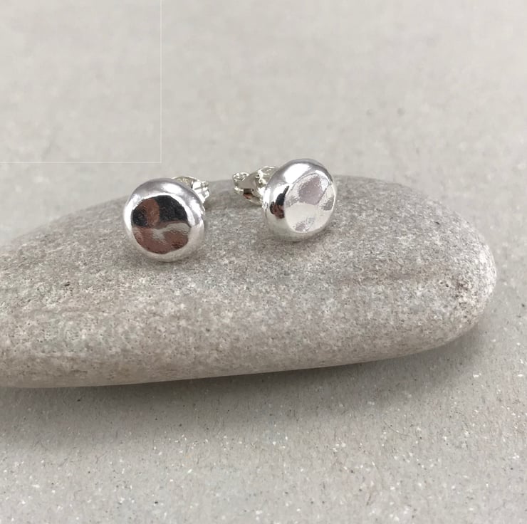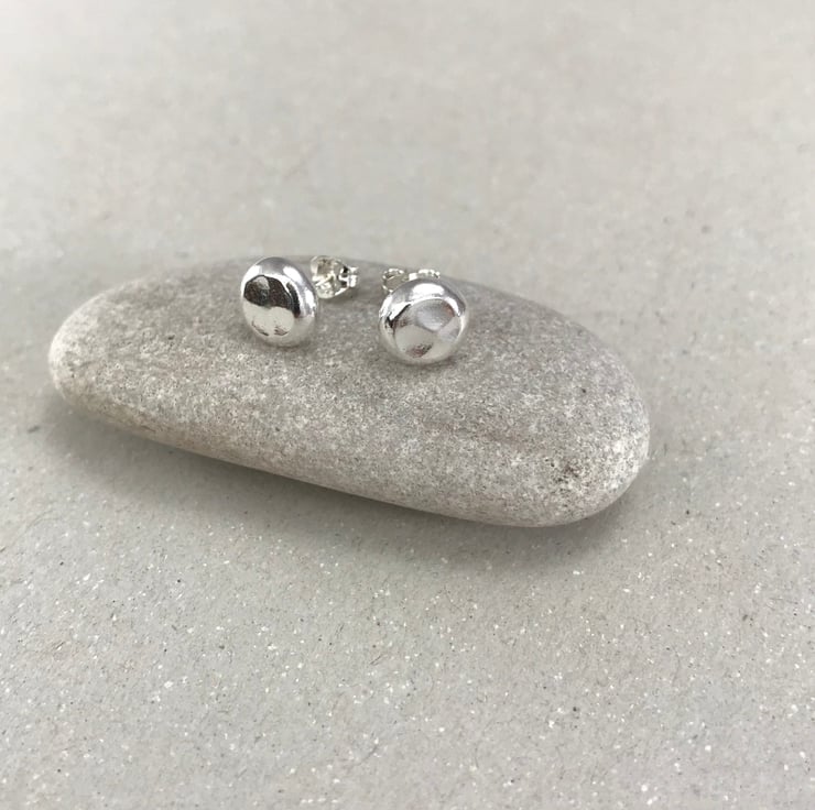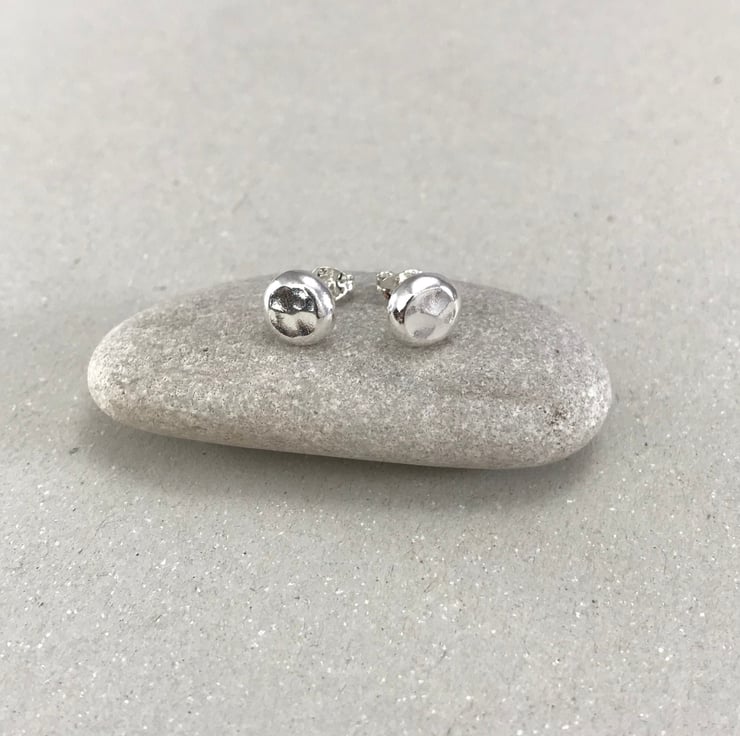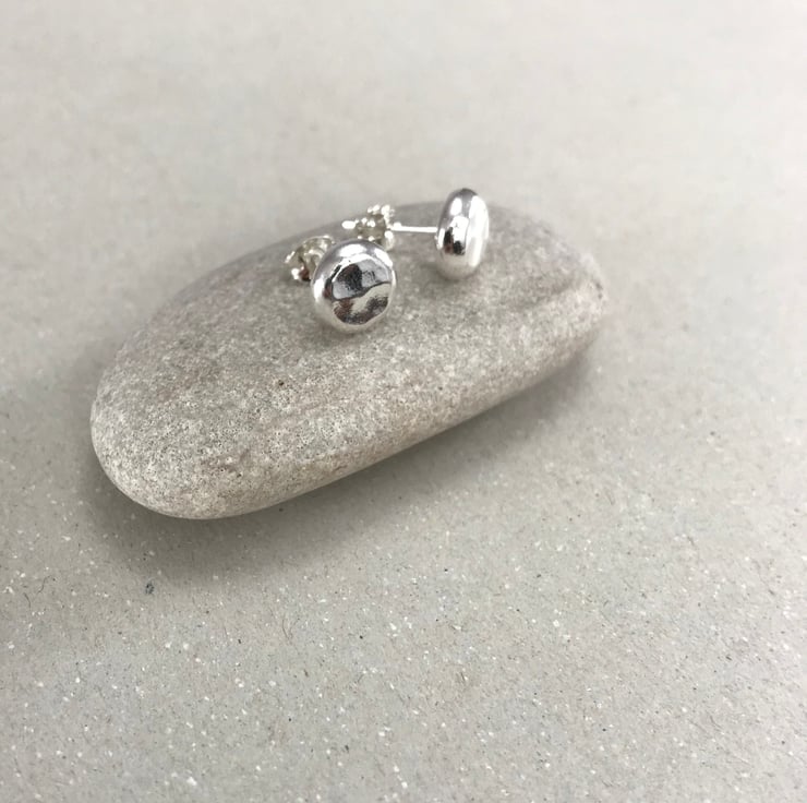 These handmade silver pebble unisex stud earrings are perfect for everyday wear or for a special occasion. They are inspired by the beach and sea; the ripples and texture of sand, the pebbles on the shoreline. I love the high polish of the silver surface and the high polish and beaten texture of the silver surface really makes these stand out and shine in all light. These would make a wonderful gift for anyone who loves craft jewellery, silver earrings, or indeed a little treat for yourself!
