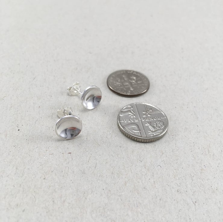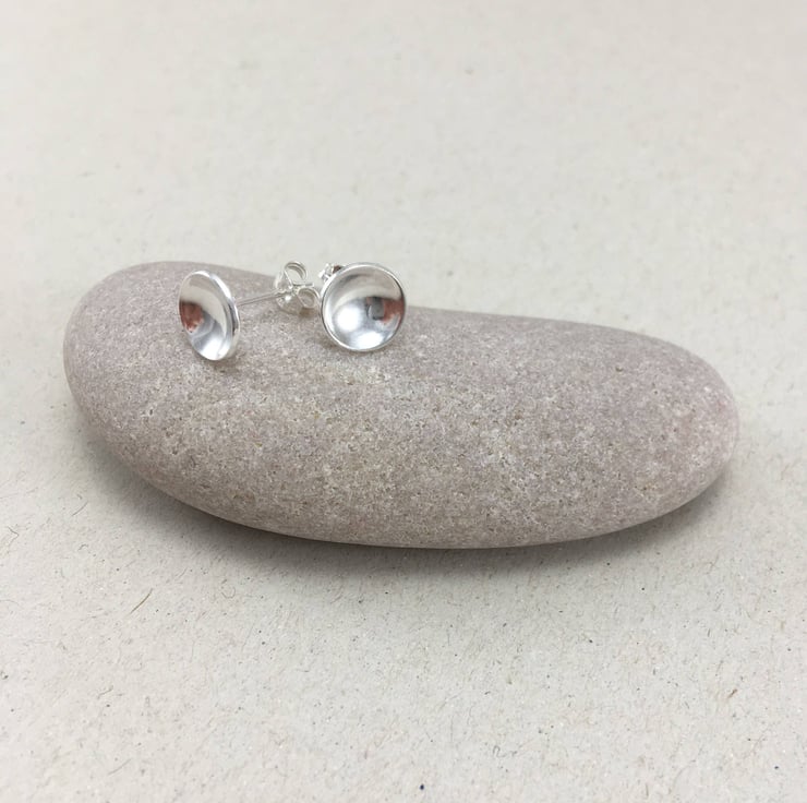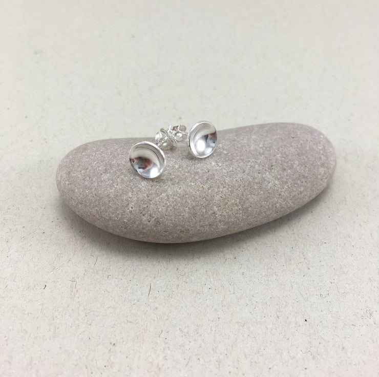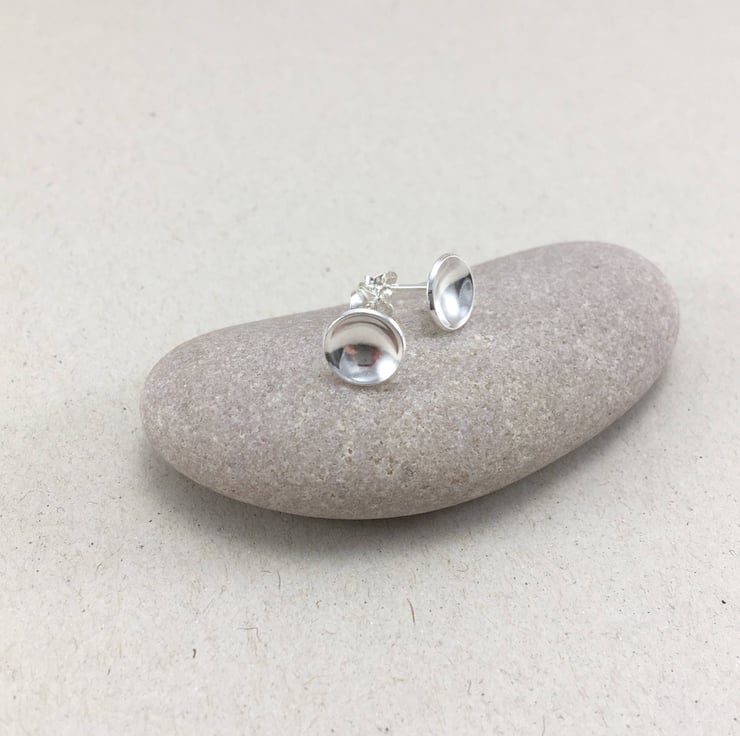 These handmade sterling silver dome stud earrings form part of my dome and pebble collection. They have been concaved and given a high reflective polish. I love the shimmer and shine of the silver and the way it catches the light and the reflections on the silver surface. These have a really modern yet subtle look. This would make a wonderful gift for anyone who loves craft jewellery or indeed a little treat for yourself!