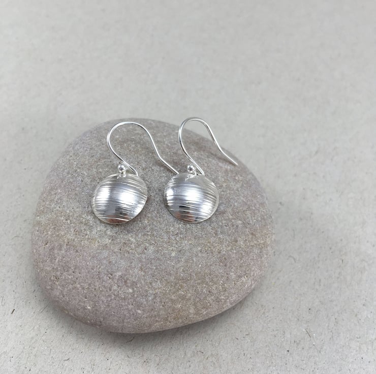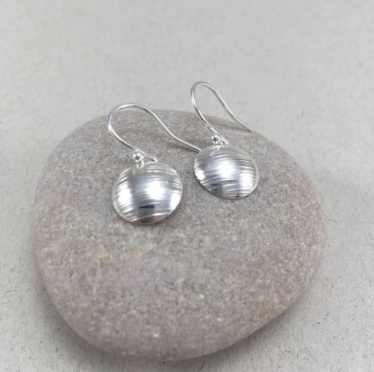 These hammered sterling silver dome dangle earrings really do show off just how beautiful silver is when it is textured and domed. I love the way the light catches the hammered line detail and the high polish of the silver surface. They have such wonderful movement when worn and are perfect for every occasion These would make a wonderful gift for anyone who loves craft jewellery or silver, or indeed a little treat for yourself!