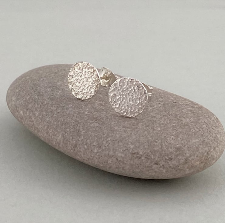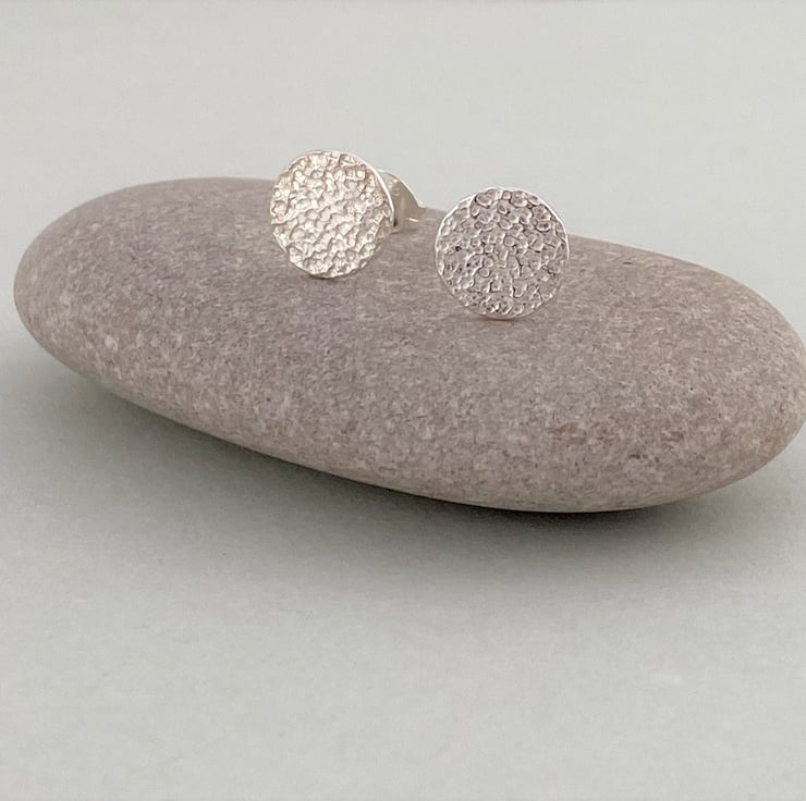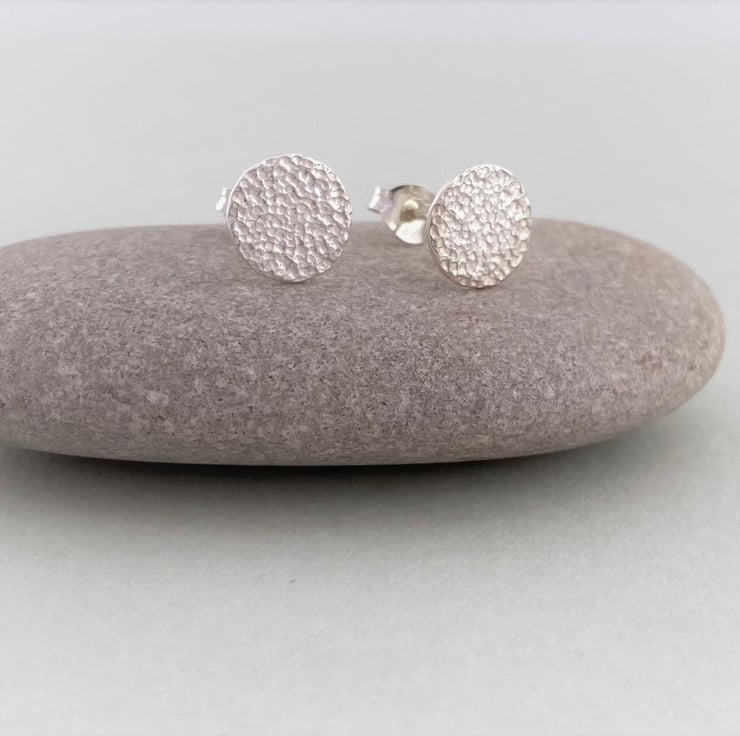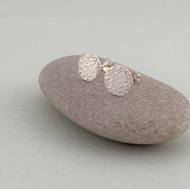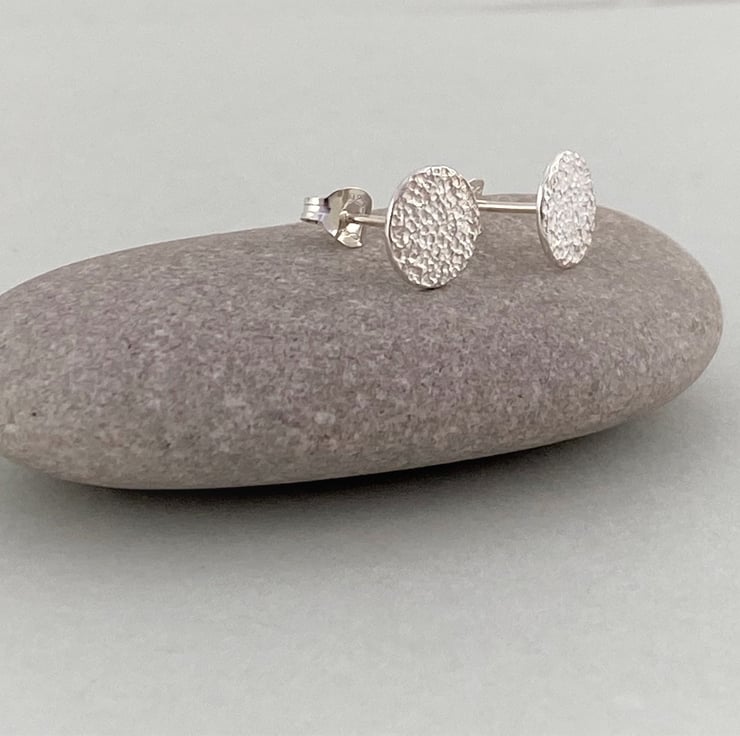 These mini sterling silver disc stud earrings have been given a textured finish which gives them a slight matte look and resembles stone. I love the polish of the textured silver surface and the way they catch the light as they are worn. These would make a wonderful gift for anyone who loves craft jewellery, silver earrings, or indeed a little treat for yourself! Perfect for every day wear!