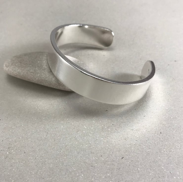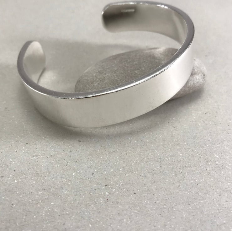 These heavyweight sterling silver cuffs are made by myself in my workshop, designed with gents in mind but can equally be worn by women too. The cuffs have been shaped by hand and have been polished to a high shine which catches the light wonderfully. The cuffs themselves measures c. 1.5 cm in width with a silver thickness of 3 mm giving a solid feel and reassuring weightiness. The openings measure between 3 cm and 3.5 cm.